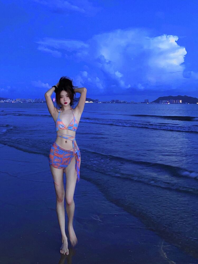 3ピースの水着セット。ビキニのトップスとボトムス、そしてパレオの3点セット♪