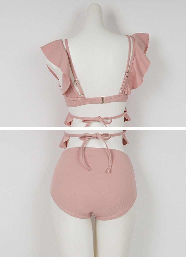 大胆なフリルがあしらわれたデザインが魅力的なビキニ。