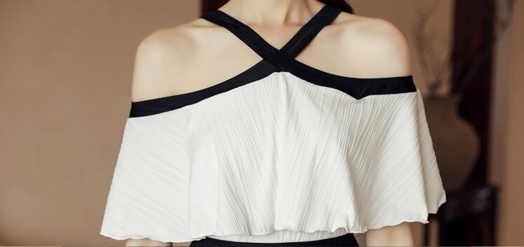 フロントネックはクロスデザインになっていて、周りと一味違うスタイルに。