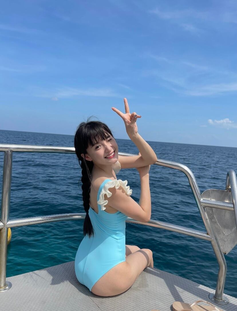 甘くてキュートなデザインが魅力のワンピース水着。定番的な形にショルダーラインのフリルが可愛らしい。目が覚めるような鮮やかなスカイブルーは注目の的にも♪