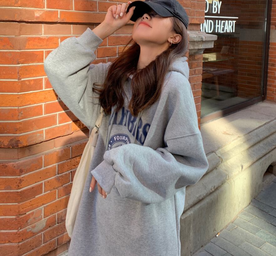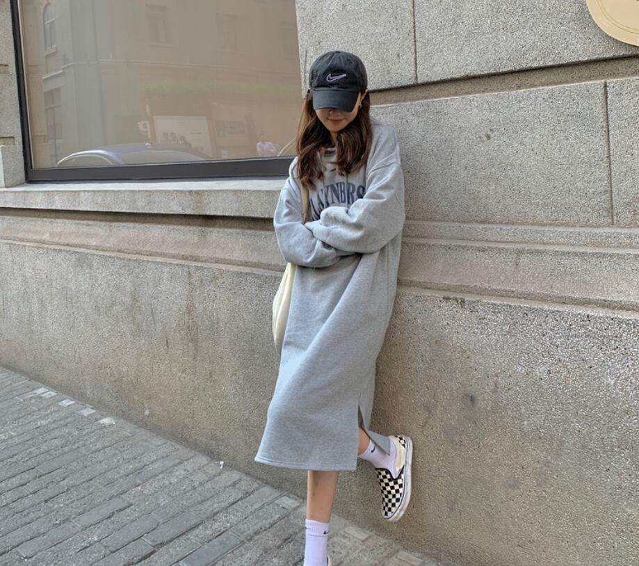 フード付きで大人可愛いデザインが特徴のスウェットワンピース。