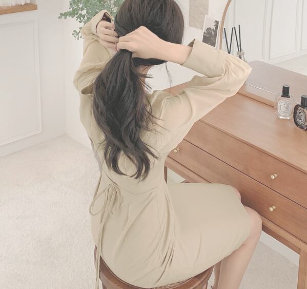ワンピース 膝丈 袖あり 長袖 ボリューム袖 Vネック スリム 細身 切り替えデザイン チュール シフォン リボン ベルト ウエストマーク 大人可愛い 大人女子 ラブリー キュート ガーリー モード系 セクシー エレガント 主役級 存在感 フォーマル とろみ感 抜け感 無地 春 夏 秋 冬 オールシーズン シーズンレス 入学式 入園式 卒業式 卒園式 10代 20代 30代 レディース デート お出かけ 公園デビュー パーティー イベント 韓国 オルチャン ファッション モテ サイズ S M L