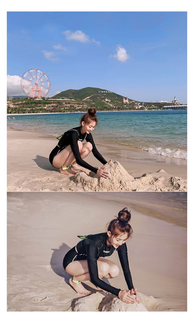 ダイビング ダイビングスーツ サーフィン ボディボード スキムボード ウェイクボード マリンスポーツ SUP サップ 水着 スイムウェア ショートパンツ ボックスパンツ セパレート 長袖 スリーブ 上下セット 2点セット ツーピース シンプル カジュアル かっこいい こなれ感 メンズライク ボーイッシュ ユニセックス スポーティー アクティブ クール 無地 10代 20代 30代 レディース 女性用 学生 夏 海 ビーチ プール スポーツ S M L XL 2XL 大きいサイズ 黒 ブラック モノトーン