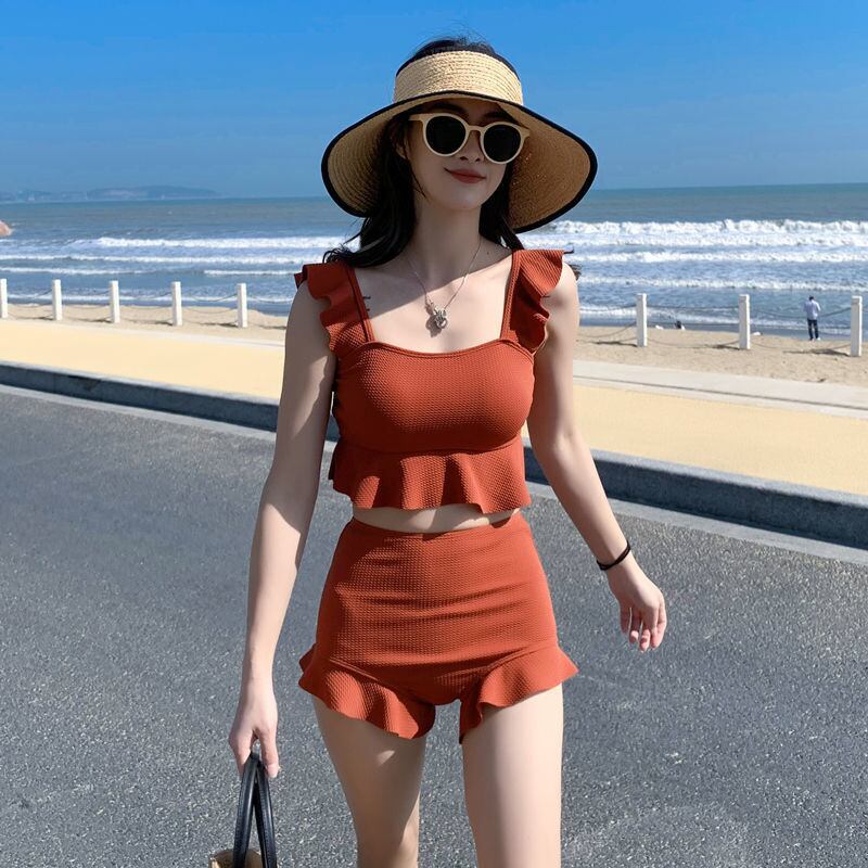 水着 ビキニ スイムウェア タンキニ 体型カバー水着 コンサバ セパレート フリル ワッフル セット 上下セット 2点セット ツーピース きれいめ シンプル カジュアル 大人 おしゃれ お洒落 かっこいい レトロ こなれ感 アクティブ キュート ガーリー 都会的 クール ラグジュアリー 無地 ベーシック 10代 20代 30代 40代 レディース 女性用 学生 夏 海 ビーチ プール リゾート スポーツ スタイルアップ 美スタイル 韓国系 定番 M L XL ブラック ブラウン オレンジ ベイクドカラー