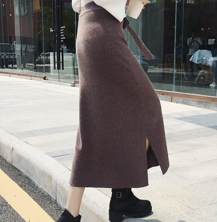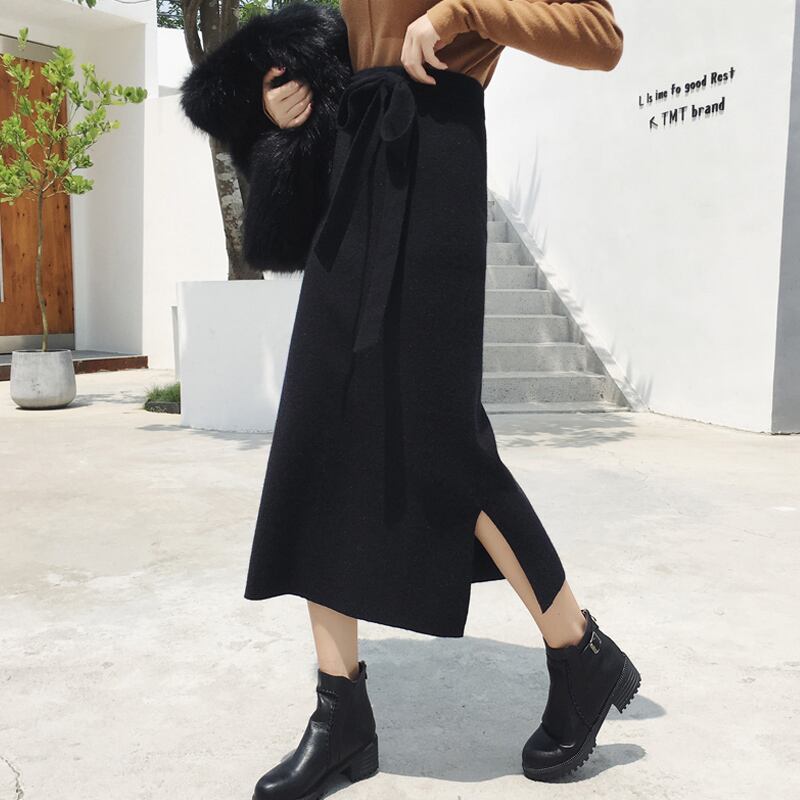 スカート ロングスカート ニットスカート ミモレ丈 ミディアム丈 スリム ストレート ウエストマーク ウエストリボン スリット サイドスリット 伸縮性 ニット 大人可愛い きれいめ シンプル 大人 上品 おしゃれ 大人女子 やわらかい 着心地 無地 春 秋 冬 10代 20代 30代 40代 50代 60代 レディース オフィス OL 通勤 学生 通学 デート お出かけ 公園デビュー 休日 着回し 普段使い 体型カバー 脚長 美シルエット フリーサイズ 黒 茶色 ブラウン 灰色 グレー 大人カラー