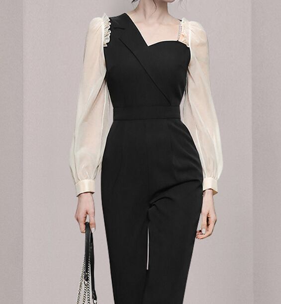 オールインワン 袖あり 長袖 ボリューム袖 スリム タイト 細身 シフォン 切り替えデザイン 異素材MIX かわいい 大人可愛い きれいめ 上品 おしゃれ お洒落 かっこいい レトロ 大人女子 ガーリー ルーズ 個性的 クール モード系 セクシー エレガント 主役級 存在感 無地 オールシーズン シーズンレス 結婚式 二次会 10代 20代 30代 レディース パーティー イベント ホテル レストラン ファッション スタイル モテ 美脚 脚長 S M L XL 白 黒
