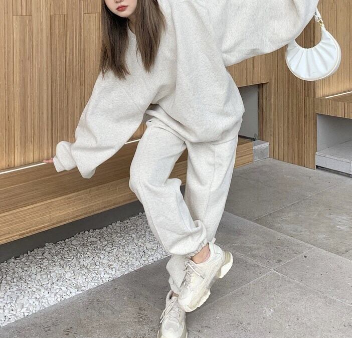 パンツ セットアップ トレーナー スウェット 部屋着 長袖 クルーネック 上下セット シンプル カジュアル こなれ感 ラフ ルーズ 無地 オールシーズン 10代 20代 レディース 学生 公園デビュー お泊まり 休日 運動 着回し 普段使い お揃い 双子 韓国系 コーデ 楽ちん 体型カバー S M L XL ゆったり ライトグレー