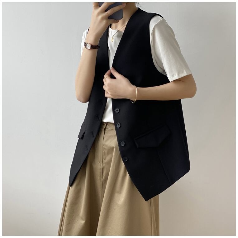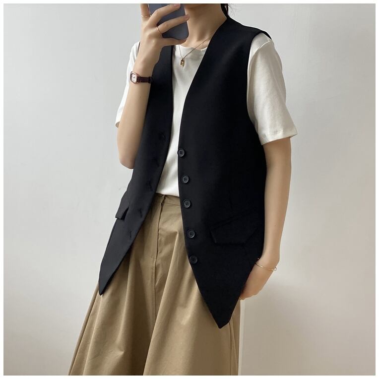 シンプルなデザインで使い勝手の良いベストが人気!ホワイトとブラックの定番モノトーンカラーが合わせやすく、1枚プラスするだけでおしゃれになります。