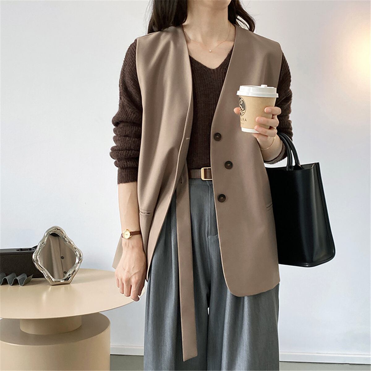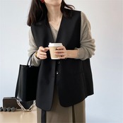 ベスト トップス ジレ トラッド ミディアム丈 ミドル丈 襟なし ノーカラー 袖なし ノースリーブ 大人可愛い きれいめ シンプル 大人 上品 おしゃれ お洒落 かっこいい レトロ 大人カジュアル 大人女子 メンズライク 個性的 クール モード系 エレガント モダン 主役級 存在感 コーデ モテ 無地 春 秋 冬 20代 30代 40代 レディース OL デート 着回し 韓国系 オルチャン ファッション 体型カバー トレンド 着やせ 着回し M L 大きめ ビッグサイズ ゆったり 黒 ブラック カーキ