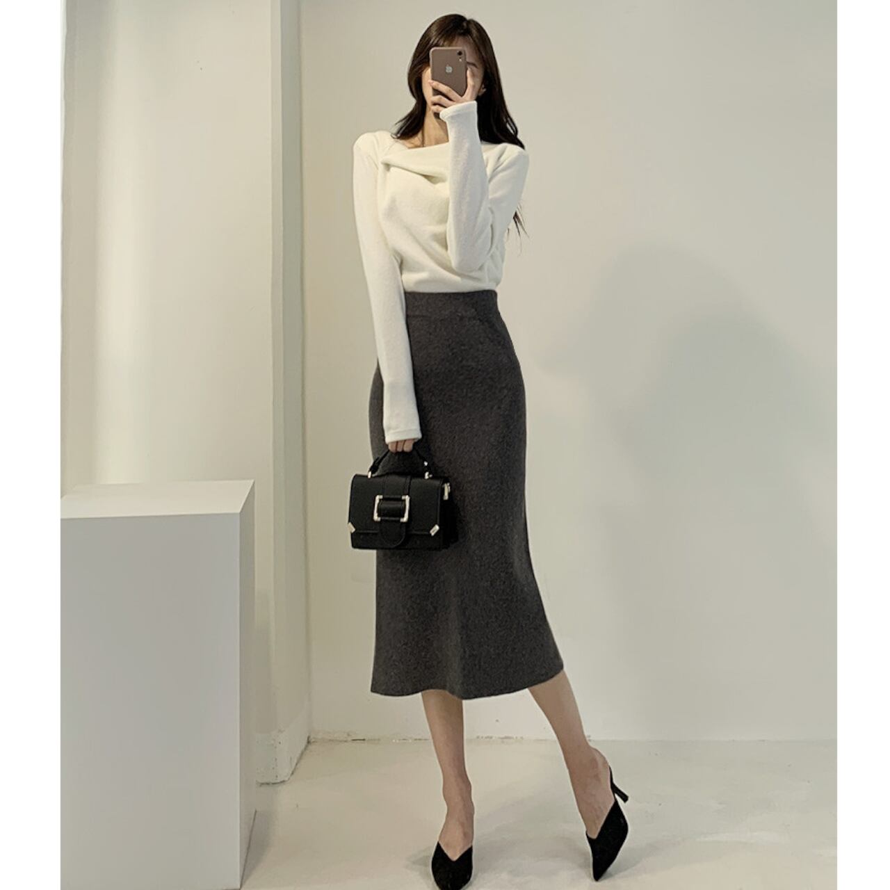 ブラウスよりあたたかく、寒い季節のオフィスコーデにも着られるカットソーです。