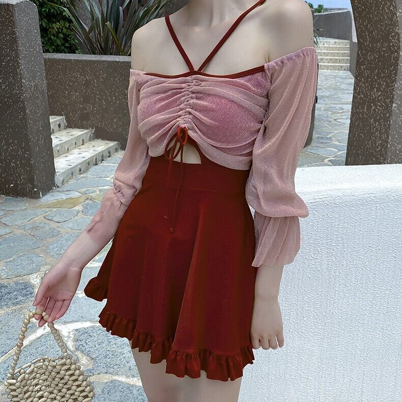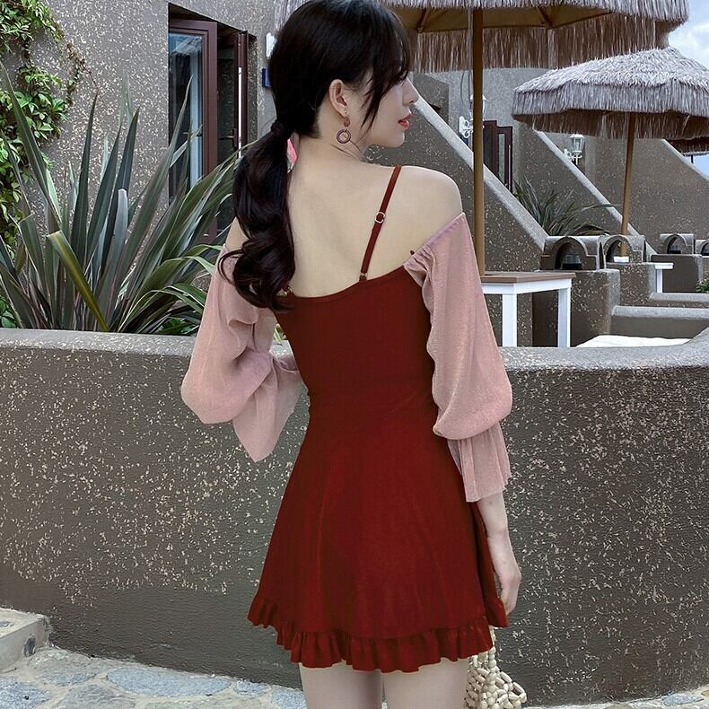 ワンポイント 水着 スイムウェア ワンピース水着 体型カバー水着 ワンピース 長袖 リボン シフォン フリル かわいい 大人可愛い 華やか おしゃれ 主役級 存在感 ラブリー キュート ガーリー 無地 10代 20代 レディース 女性用 女の子 春 夏 海 ビーチ プール リゾート 旅行 体系カバー 二の腕カバー 美脚 脚長 着痩せ スタイルアップ 美スタイル スタイル プレゼント プチプラ モテ トレンド 流行 インスタ映え M L XL 2XL 赤 レッド 青 ブルー