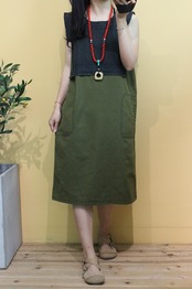 ワンピース Aライン カジュアルドレス 膝丈 ひざ丈 膝下 ミモレ ミモレ丈 ロング ロング丈 7分丈 ミディアム丈 袖なし ノースリーブ 切り替えデザイン ドッキング コットン 綿 バイカラー パッチワーク ツートーン 切り替えワンピース オールインワン シンプル カジュアル 大人 おしゃれ お洒落 レトロ 大人可愛い かわいい きれいめ 存在感 キュート ガーリー 個性的 10代 20代 30代 40代 レディース デート ファッション コーデ スタイル ポケット 夏 フリーサイズ 緑 グリーン