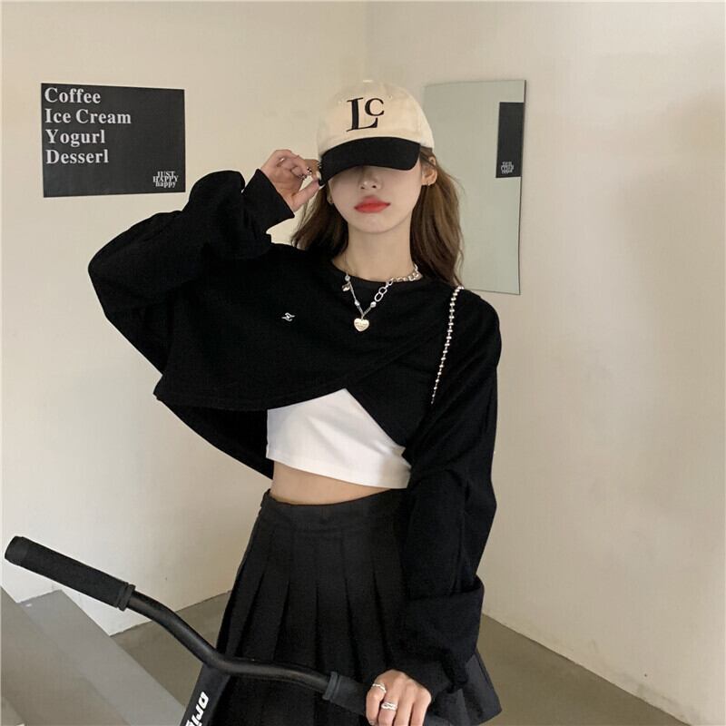 トップス カットソー トレーナー スウェット ジャージ 部屋着 ミニ ミニ丈 ショート ショート丈 長袖 ショートトップ かわいい 大人可愛い おしゃれ お洒落 かっこいい こなれ感 ラフ メンズライク ボーイッシュ スポーティー キュート ガーリー 個性的 クール モダン 主役級 存在感 コーデ モテ 無地 春 秋 冬 10代 20代 30代 40代 レディース 学生 デート 韓国系 オルチャン ファッション スタイル トレンド 着回し デイリー M L XL 2XL 黒 ブラック グレー 灰色