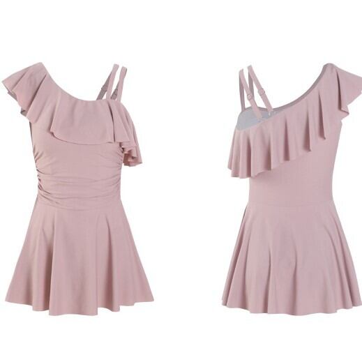 大人可愛いピンク・ブルーのワンショルダーワンピース水着です。