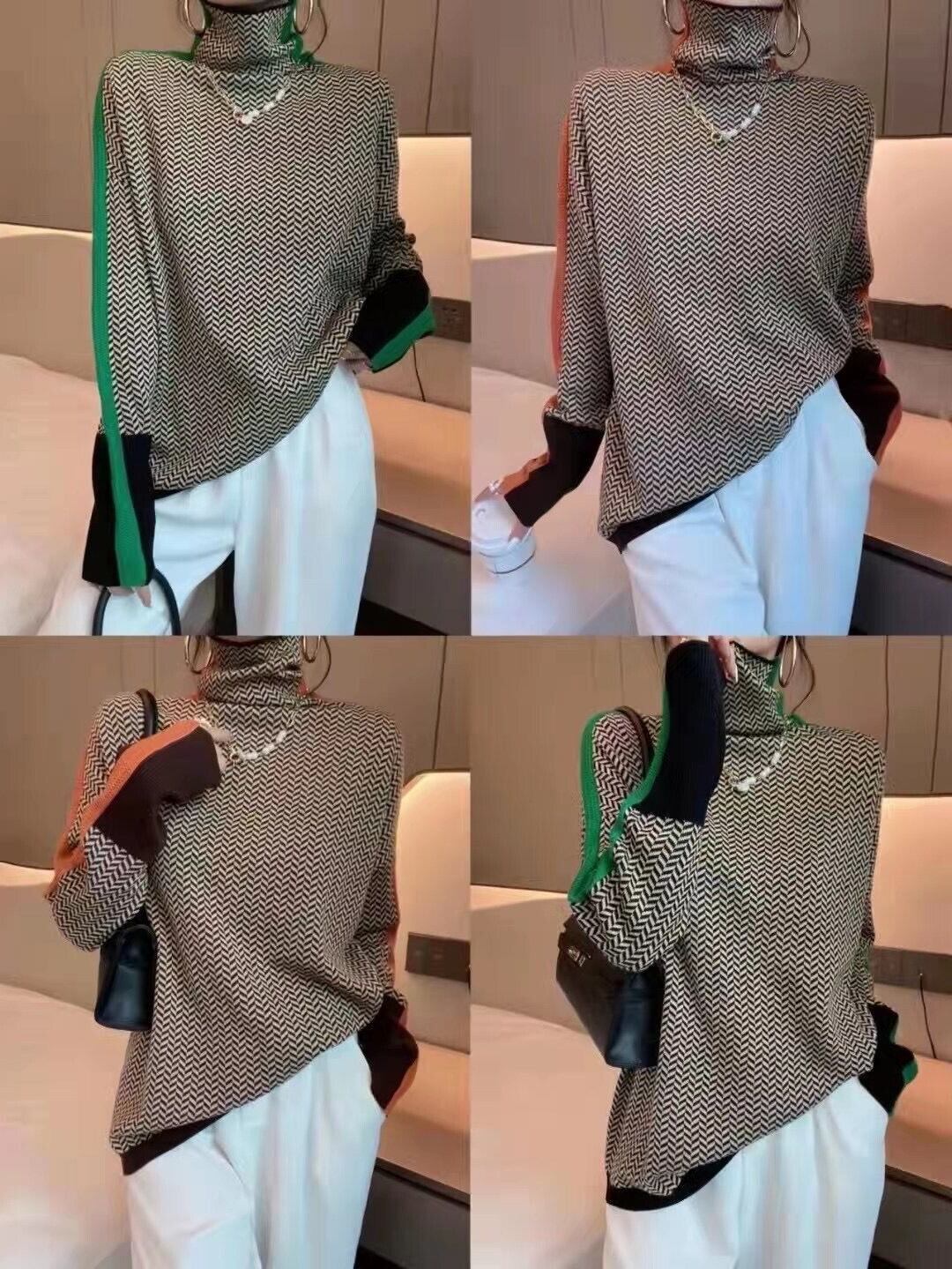 トップス セーター 袖あり 長袖 タートルネック ニット 大人可愛い おしゃれ 柄 秋 冬 レディース お出かけ S M L XL 2XL 緑 グリーン オレンジ