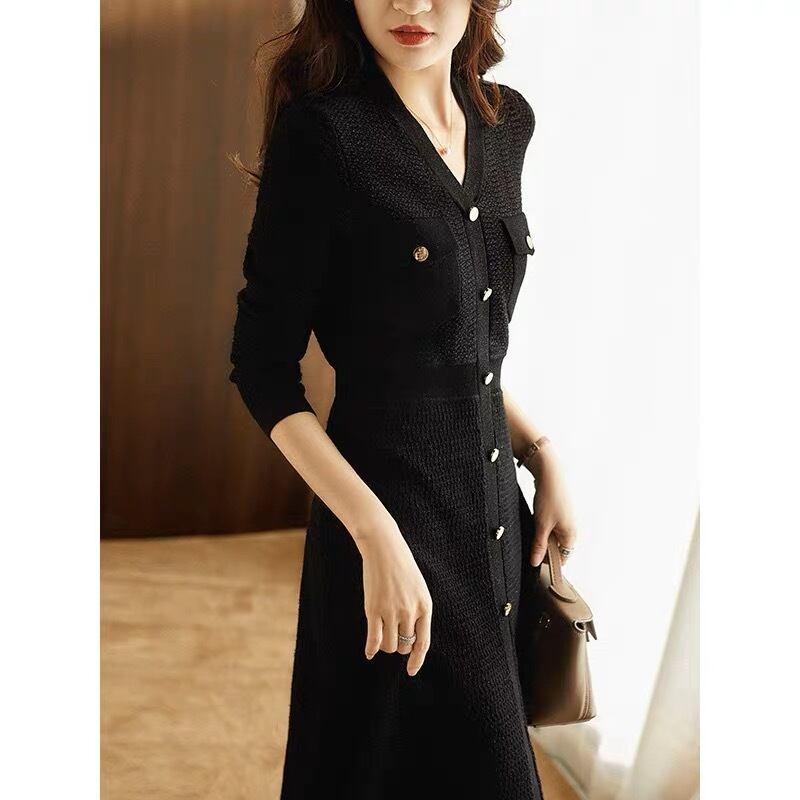 ワンピース フレアワンピース 膝下 ミモレ ミモレ丈 袖あり 長袖 Vネック 襟なし セミフレア かわいい 大人可愛い きれいめ 大人 上品 おしゃれ お洒落 大人可愛い 大人女子 キュート 主役級 存在感 無地 秋 冬 誕生日 10代 20代 30代 レディース 女性用 ママ デート お出かけ 女子会 お泊まり 休日 ホテル レストラン 韓国系 オルチャン ファッション モテ プレゼント ギフト トレンド インスタ映え S M L XL 大きいサイズ 黒 ホテルランチ アフタヌーンティ ボタン