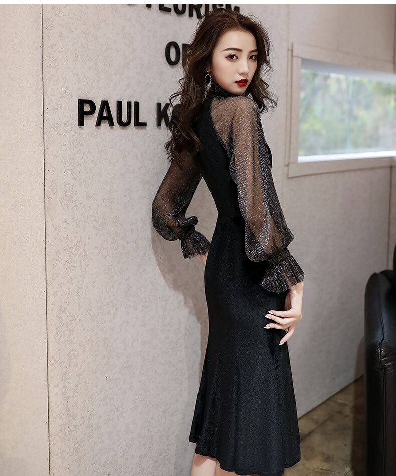 ドレス パーティードレス パーティドレス 結婚式ドレス 二次会ドレス 披露宴ドレス ステージドレス フォーマルドレス 膝丈 ひざ丈 膝下 ミモレ 袖あり 長袖 ボリューム袖 スタンドカラー Aライン マーメイド フレア セミフレア 透け感 シースルー シンプル 大人 上品 おしゃれ お洒落 セクシー エレガント フォーマル かわいい きれいめ ゴージャス 華やか クラシック 無地 20代 30代 40代 レディース デート パーティ 春 夏 秋 冬 オールシーズン S M L XL 2XL 黒 ブラック