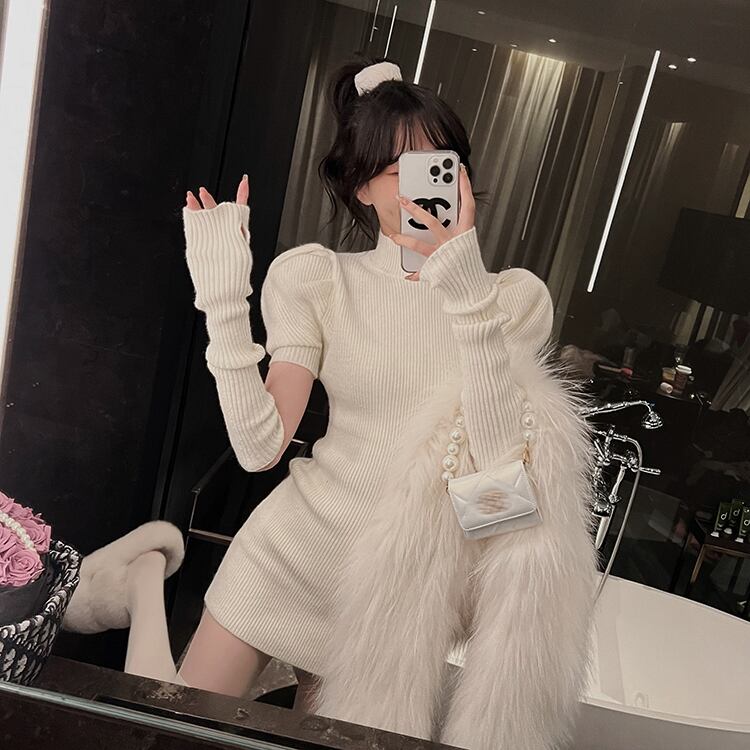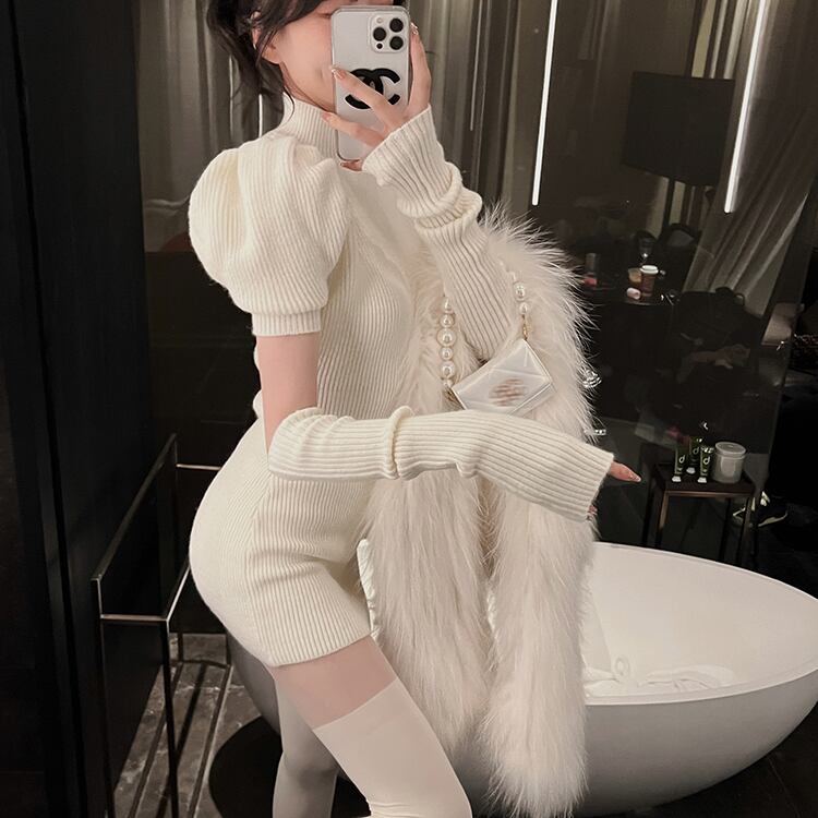 パフスリーブミニワンピース ハイネックニットワンピース ミニ丈ニットスカート リブニットワンピース スカート ワンピース オールインワン ミニスカート コクーンスカート タイトスカート ミニ ミニ丈 ショート ショート丈 袖あり 長袖 パフスリーブ ハイネック スリム タイト 細身 ハイウエスト リブニット かわいい 大人可愛い きれいめ シンプル カジュアル 大人 上品 おしゃれ お洒落 大人可愛い 大人女子 こなれ感 ラブリー キュート ガーリー エレガント モダン 主役級 存在感 秋 冬 20代