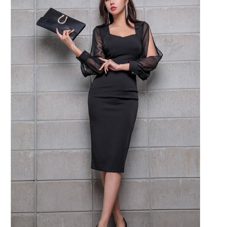 パーティドレス ワンピース 膝丈 ひざ丈 袖あり 長袖 マーメイド シフォン 薄手 かわいい 大人可愛い きれいめ シンプル カジュアル 大人 上品 おしゃれ お洒落 かっこいい エキゾチック 大人可愛い 大人女子 こなれ感 クール モード系 セクシー エレガント モダン 主役級 存在感 フォーマル 無地 春 夏 秋 冬 オールシーズン シーズンレス 20代 30代 レディース 女性用 ママ パーティー イベント ホテル レストラン ホテルランチ アフタヌーンティ 着回し 重ね着 お揃い 双子 韓国