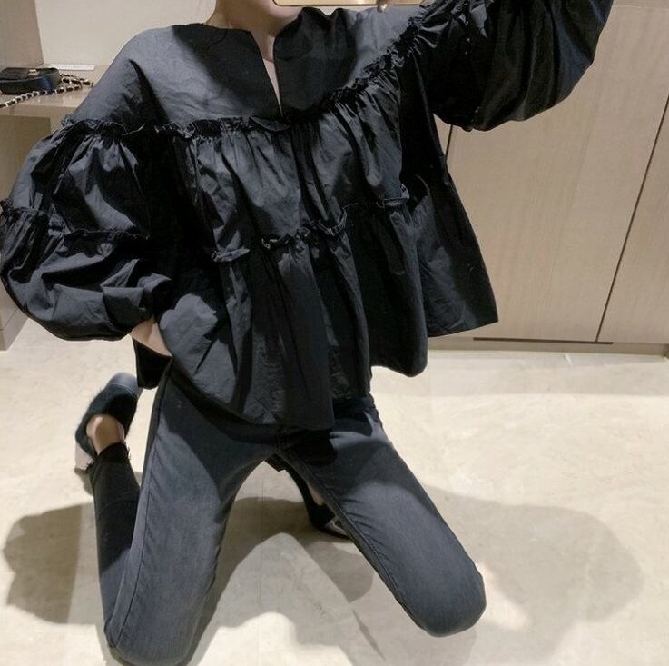 ワイドデザイン フリルトップス ボリューム袖トップス ガーリーコーデトップス トップス シャツ カットソー 袖あり 長袖 ボリューム袖 パフスリーブ ヘンリーネック ワイド Aライン フリル かわいい 大人可愛い きれいめ シンプル カジュアル 大人 上品 おしゃれ お洒落 大人可愛い 大人女子 こなれ感 ラフ ラブリー キュート ガーリー ルーズ 個性的 エレガント モダン 主役級 存在感 春 秋 10代 20代 30代 40代 50代 レディース 女性用 ママ