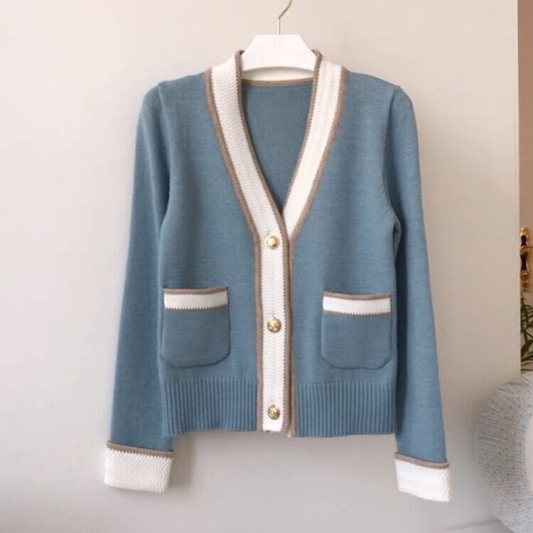 バイカラーがおしゃれなカーディガンです。