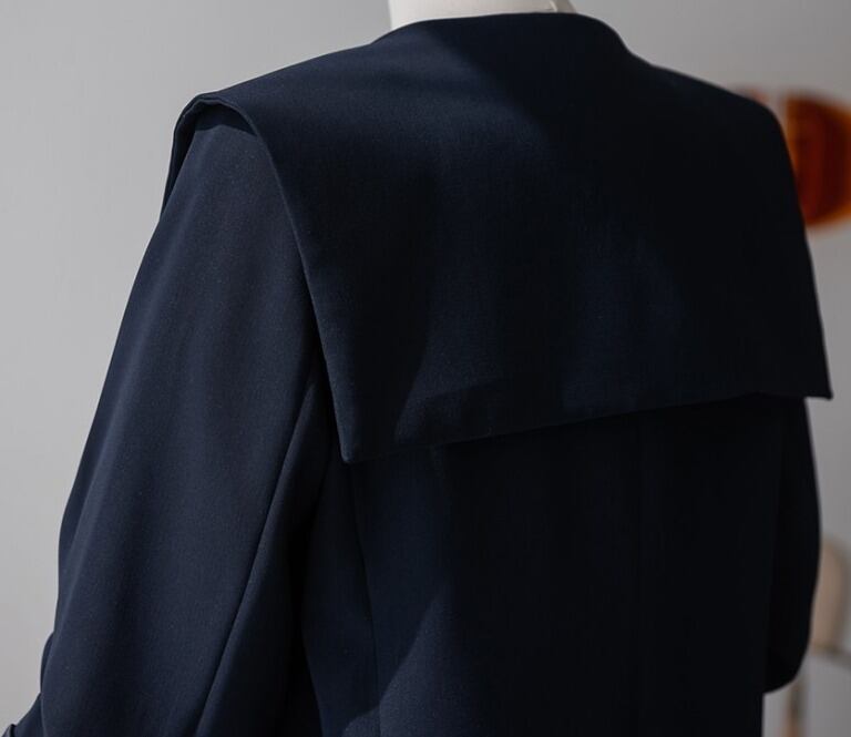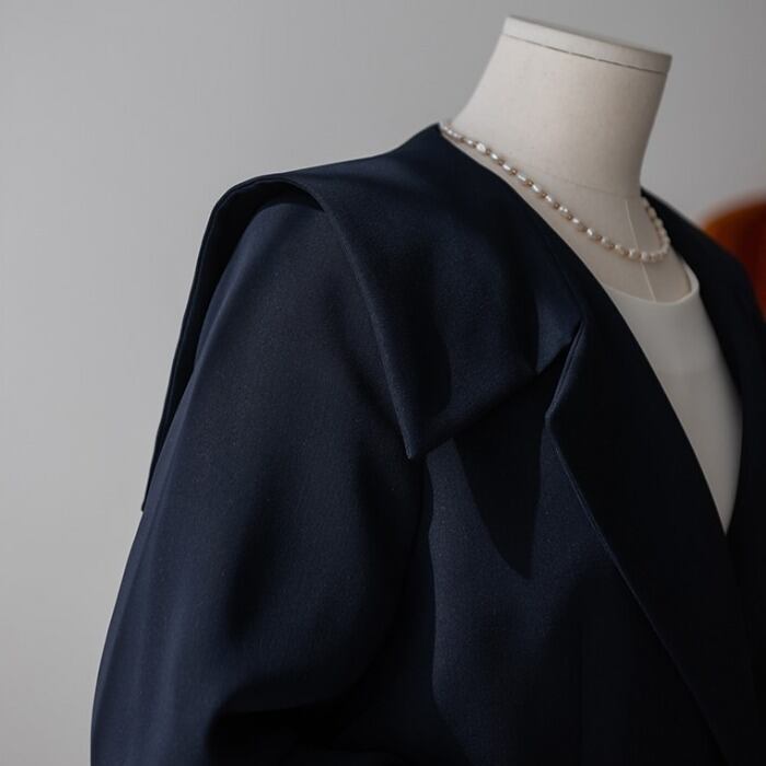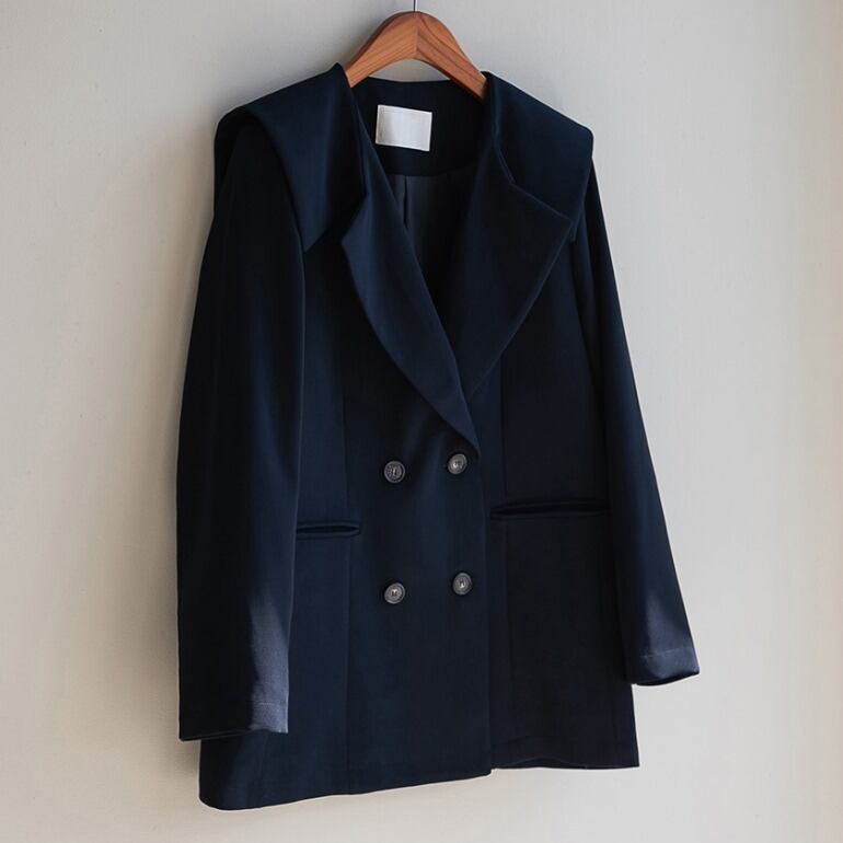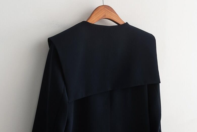 ジャケット 上着 羽織り 袖あり 10分袖 襟付き ストレート ワイド スリット バックスリット ポケット 前開き コンサバ シンプル カジュアル おしゃれ お洒落 レトロ こなれ感 キュート ガーリー 個性的 都会的 抜け感 学生風 ベーシック 無地 秋 冬 10代 20代 30代 レディース 女性用 ママ 女の子 お出かけ 休日 旅行 ショッピング 着回し 普段使い 楽ちん 体型カバー 清楚 トレンド 定番 L フリーサイズ ゆったり ゆる ブルー ネイビー 青 ベーシックカラー 大人カラー