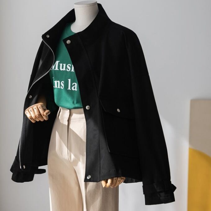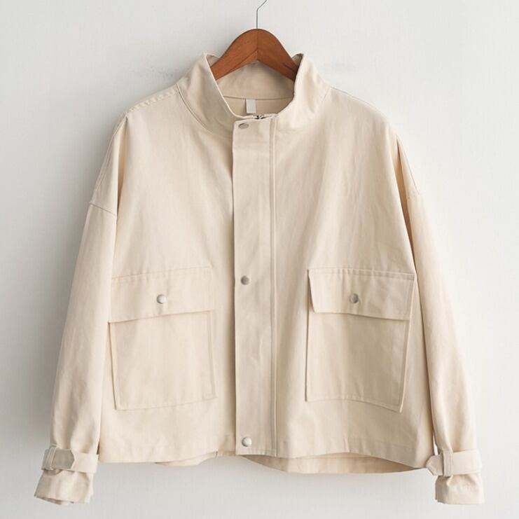 ジャケット 袖あり 長袖 スタンドカラー スタンドネック ファスナー ポケット 前開き シンプル カジュアル おしゃれ お洒落 かっこいい レトロ こなれ感 ラフ メンズライク ボーイッシュ ユニセックス 都会的 クール シック 抜け感 ベーシック 無地 春 秋 10代 20代 30代 40代 50代 60代 レディース 女性用 OL 学生 お出かけ 休日 イベント 旅行 ショッピング 着回し 普段使い 楽ちん 体型カバー 定番 ホワイト オフホワイト ブラック モノトーン ベーシックカラー ヘビロテ