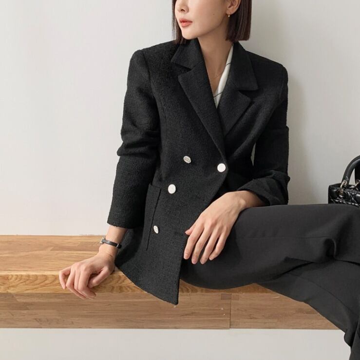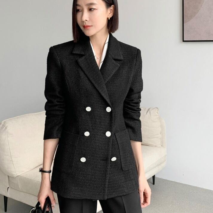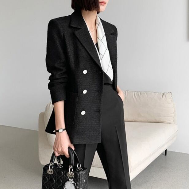 アウター ジャケット 上着 羽織り 袖あり 長袖 襟付き ポケット 前開き コンサバ ツイード シンプル 大人 上品 おしゃれ お洒落 かっこいい レトロ マニッシュ ユニセックス 都会的 クール シック モダン ラグジュアリー フォーマル ベーシック 無地 春 秋 会議 ミーティング プレゼン 20代 30代 40代 レディース 女性用 ビジネス OL 通勤 パーティー イベント 旅行 リクルート 就活 ホテル レストラン 着回し 普段使い モテ 清楚 定番 S M ブラック モノトーン 大人カラー