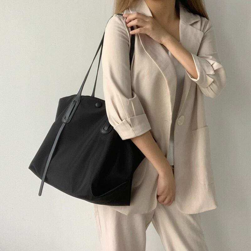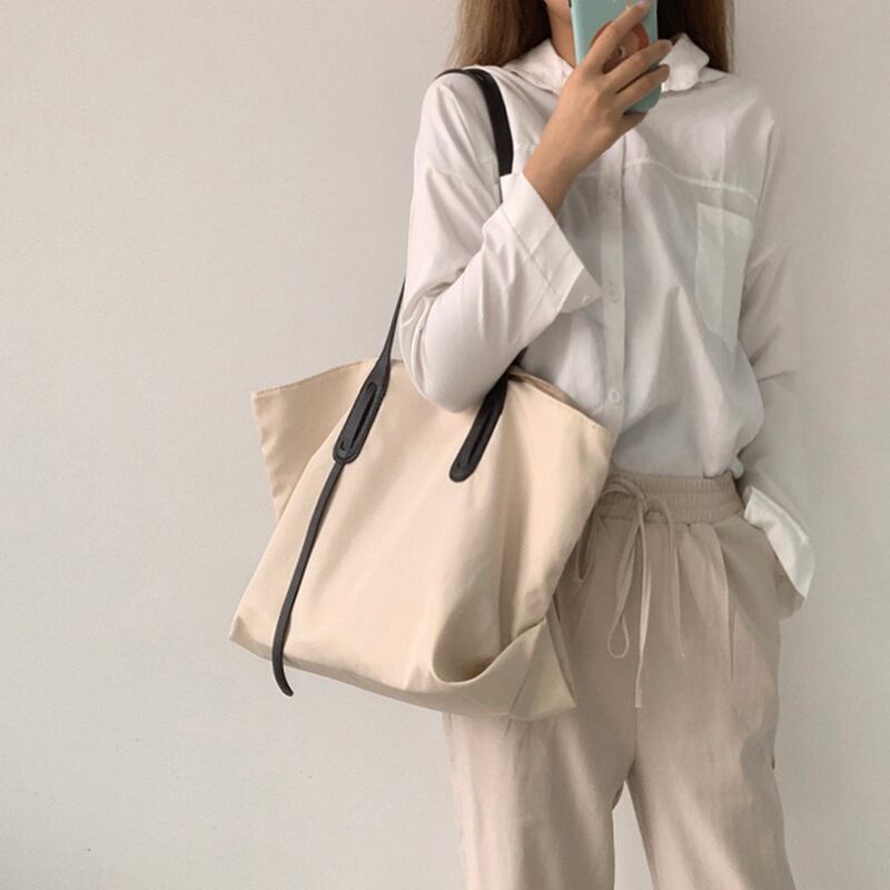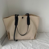 モノトーンカラーでどんなコーディネートにも合わせやすく、おしゃれに決まるキャンバスバッグが登場!大容量でたっぷり入る、シンプルで使いやすいデザインです。