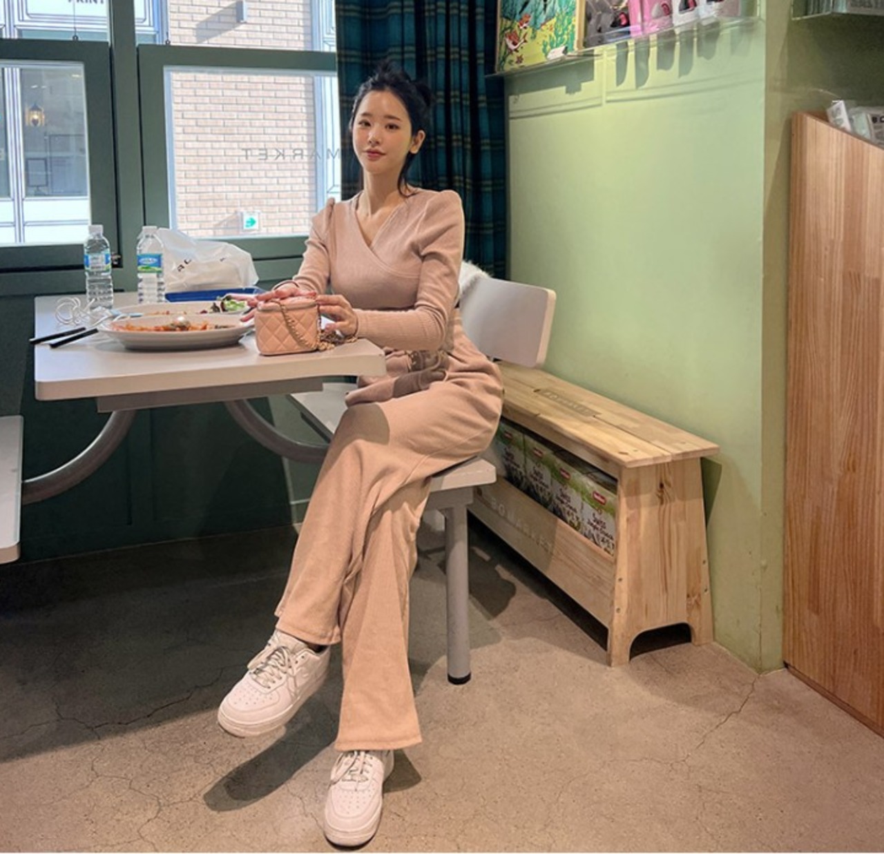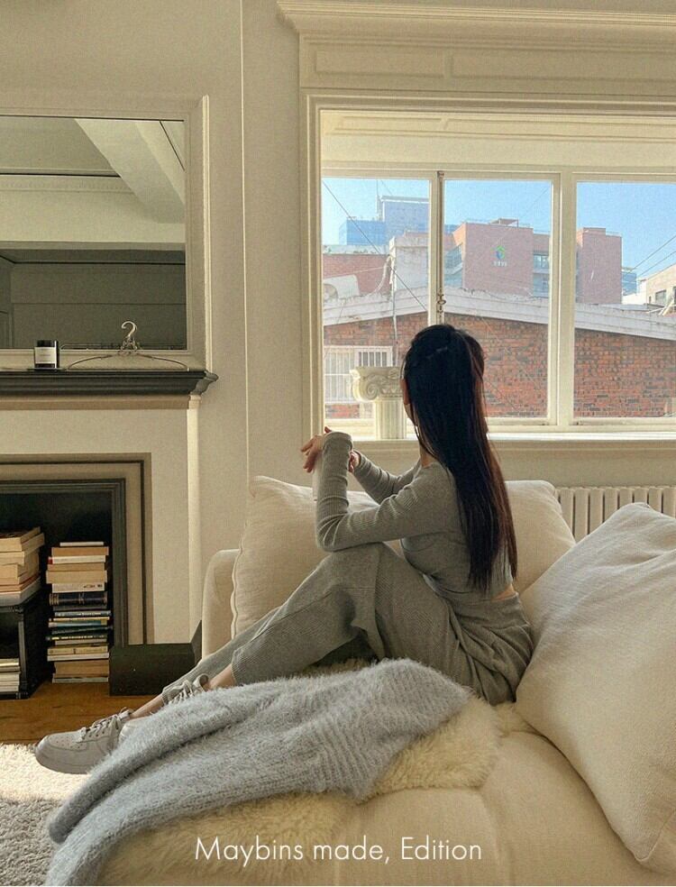この上下セットアップは、カジュアルながらも上品な雰囲気が魅力的なアイテムです。リブニット生地を使用しており、上品な質感があります。ウエストにはゴムが入っているので、着心地も抜群。セットアップということで、とてもおしゃれな雰囲気に。
