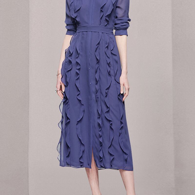 ワンピース パーティードレス 披露宴ドレス ミモレ丈ドレス フォーマルドレス 膝下 ミモレ丈 マキシ丈 袖あり襟付き フリル 透け感 かわいい 大人可愛い 上品 エレガント とろみ感 フォーマル エレガント 華やか パーティー ウェディング 結婚式 二次会 披露宴