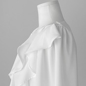 女性らしい柔らかな印象を与えるフリルブラウスです。