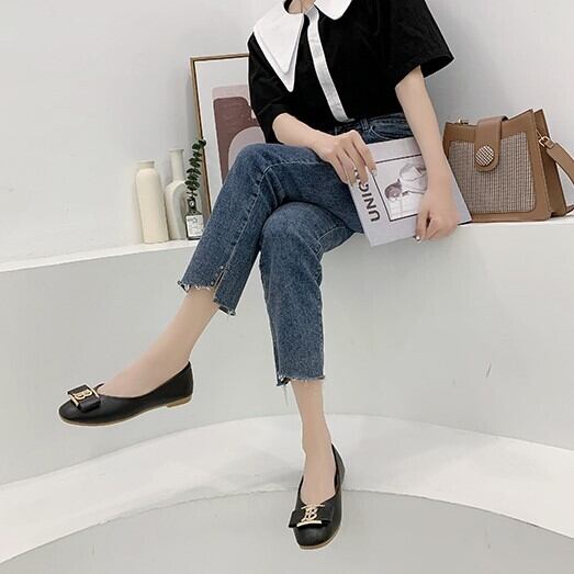 このポインテッドトゥのフラットシューズは、ワンポイントがアクセントになったおしゃれなデザインが特徴です。