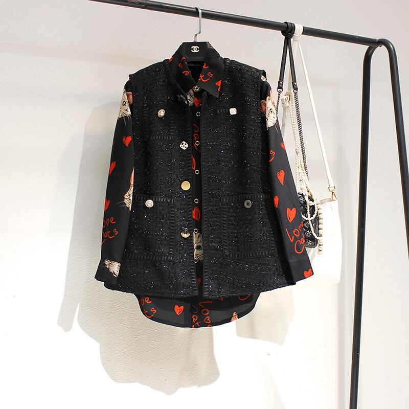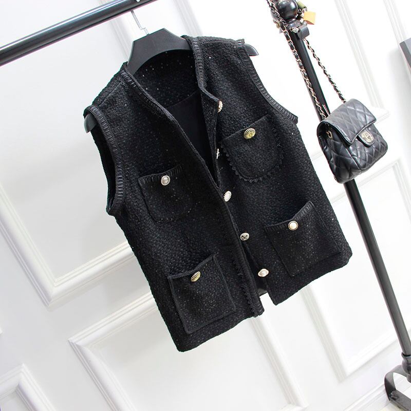 キラキラした生地のエレガントなベスト。シフォンシャツと合わせてエレガントなコーデにもよく合います。シックなブラックが気品あるコーディネートになること間違いなしです。