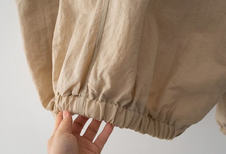 オーソドックスなデザインに、裾にドロストをあしらい、様々なシルエットで遊びコーデも◎