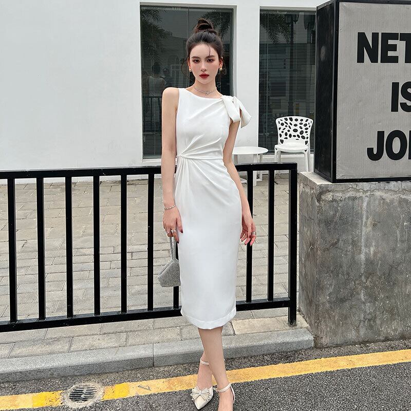 ワンピース ワンピ ミディアム丈 半端丈 膝丈 ひざ丈 膝下 袖なし 肩出し ノースリーブ ボートネック 襟なし 無地 シンプル リボン レディース 上品 きれいめ かわいい 大人可愛い お洒落 おしゃれ 大人女子 エレガント クラシック 存在感 コーデ モテ デート ファッション スタイル 韓国 オルチャン 着回し デイリー 日常使い 結婚式 二次会 披露宴 フォーマル お嬢様 抜け感 こなれ感 レストラン イベント パーティー パーティ 20代 30代 40代 春 夏 S M L XL 黒 ブラック