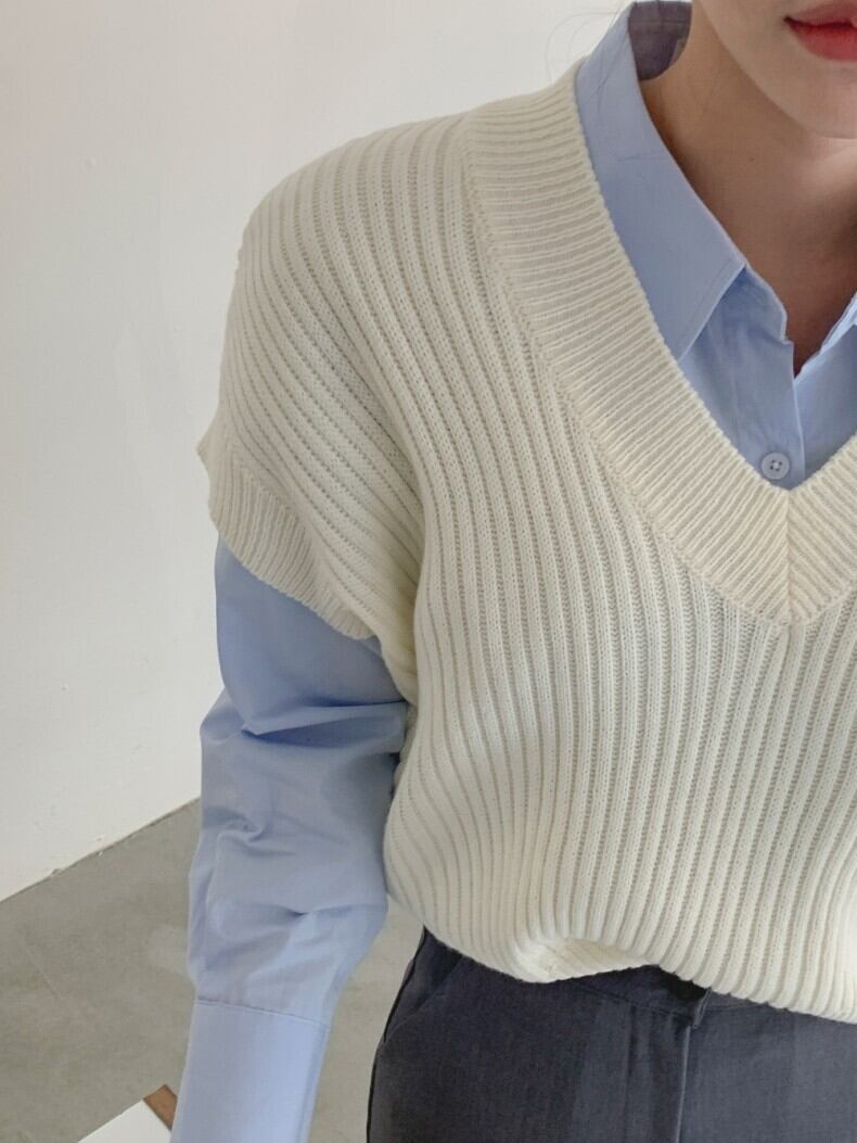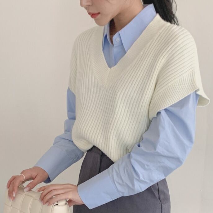 トップス ベスト ショート ショート丈 袖なし Vネック 襟なし ノーカラー ワイド ニット リブニット シンプル カジュアル おしゃれ お洒落 レトロ こなれ感 ラフ ルーズ 個性的 モード系 抜け感 学生風 ベーシック 無地 春 春 秋 10代 20代 30代 40代 レディース 女性用 オフィス ビジネス OL 通勤 学生 デート お出かけ 休日 旅行 ショッピング 合コン コンパ 着回し 普段使い 重ね着 レイヤード 楽ちん 体型カバー 清楚 フリーサイズ ホワイト ブラック グリーン パープル