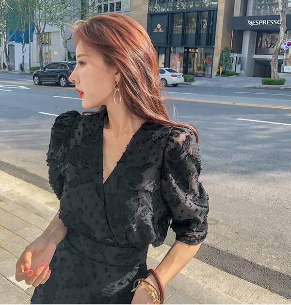 シースルー生地 マーメイドラインワンピース Vネックエレガントワンピ スカート ワンピース オールインワン ロングスカート 7分丈 ミディアム丈 袖あり 半袖 5分袖 五分袖 ボリューム袖 パフスリーブ Vネック スリム 細身 マーメイド 刺繍 チュール シフォン フリル ハイウエスト 透け感 シースルー かわいい 大人可愛い きれいめ シンプル カジュアル 大人 上品 おしゃれ お洒落 大人可愛い 大人女子 こなれ感 ラフ ガーリー クール モード系 エレガント 主役級 存在感 春 夏 秋 20代