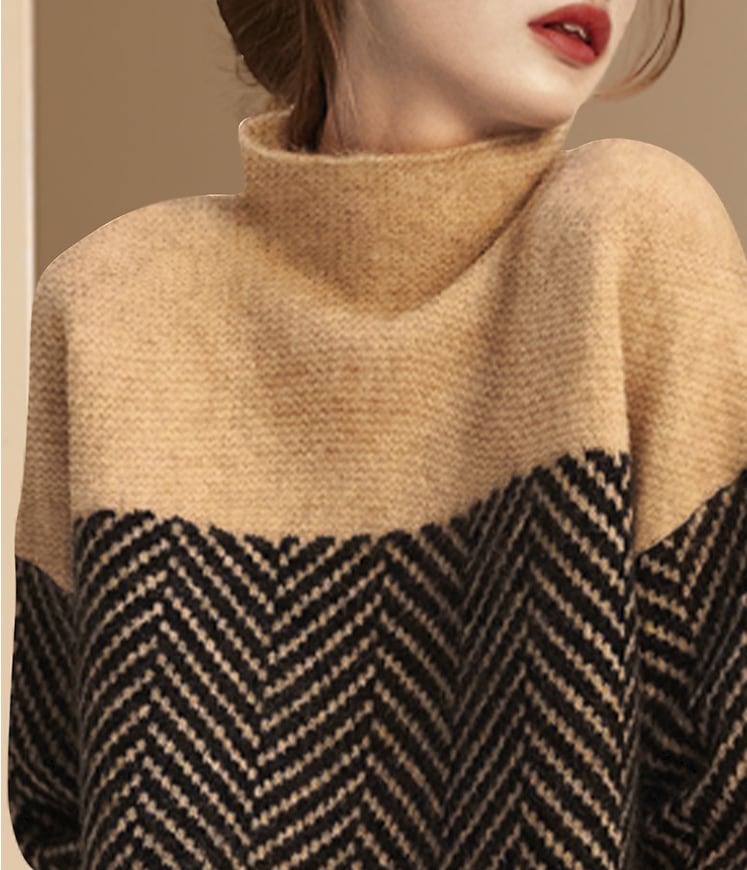 厚手であったかいハイネックセーターでウィンターファッションをカジュアルに。ツーカラーのデザインでオシャレな印象に。ベーシックカラーが他のアイテムとの相性抜群。オールマッチなトップス。