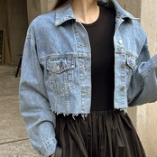 メンズライクなオーソドックスなデニムジャケット。定番的なデニムジャケットをショート丈にすることで、こなれ感漂うコーデに仕上がります。