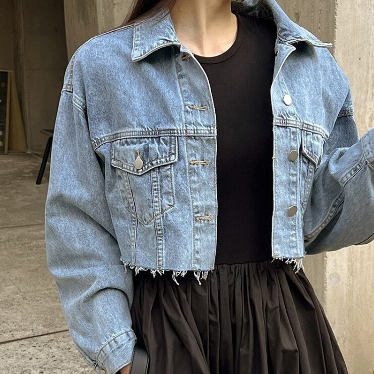アウター ジャケット 上着 羽織り ジャンパー Gジャン ショート ショート丈 袖あり 長袖 襟付き ワイド ダメージ ウォッシュ ポケット 前開き デニム ブルーデニム シンプル カジュアル おしゃれ お洒落 かっこいい レトロ ヴィンテージ こなれ感 ラフ メンズライク ボーイッシュ ユニセックス ルーズ 個性的 抜け感 アメリカン風 無地 春 秋 10代 20代 30代 レディース 女性用 旅行 ショッピング 着回し 普段使い 韓国系 楽ちん 体型カバー ダメージ トレンド ブルー