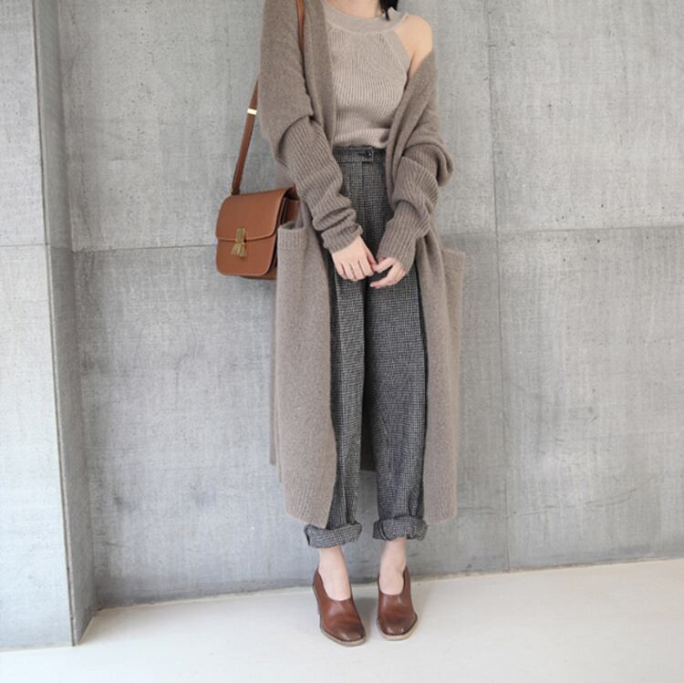 ロング丈のガウン風カーディガン。ルーズなシルエットでこなれ感があり、重ね着にも最適です。シンプルなので、綺麗めからカジュアルまで、様々なシーンで着用していただけます。