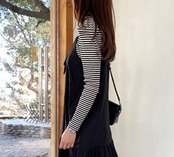 ラフにも上品にもコーディネートできる大人可愛いロングボーダーTシャツ。襟リボンと上品なパフスリーブデザインはmん、10代から30代までの幅広い年代に人気です。女子会やデートなどのお出かけシーンはもちろんの事、日常使いにもぴったり。あなたの毎日に、かわいさと大人っぽさをプラスしてくれる一枚を手に入れませんか?