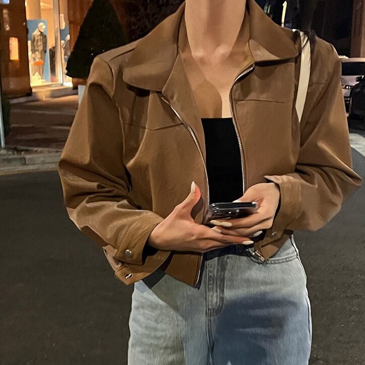 アウター ジャケット 上着 羽織り ショート ショート丈 袖あり 長袖 襟付き ファスナー 前開き レザー フェイクレザー シンプル カジュアル おしゃれ お洒落 かっこいい レトロ こなれ感 ラフ メンズライク ユニセックス 都会的 クール シック ラグジュアリー 抜け感 ベーシック 無地 春 秋 10代 20代 30代 40代 50代 60代 レディース 女性用 学生 デート お出かけ 休日 ショッピング 合コン 着回し 普段使い 楽ちん トレンド フリーサイズ ワンサイズ ブラック ブラウン ピンク