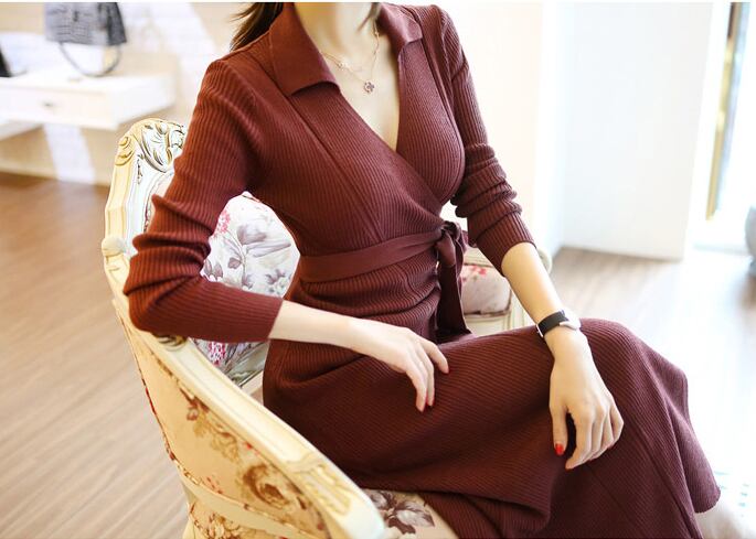 Vネック襟付きワンピース ニットワンピース 長そでニットワンピース ハイウェストワンピ スカート ワンピース ニットソー プルオーバー オールインワン タイトスカート ニットスカート ロング ロング丈 7分丈 ミディアム丈 袖あり 長袖 Vネック 襟付き スリム タイト 細身 Iライン マーメイド リボン ベルト ウエストマーク ウエストリボン ハイウエスト かわいい 大人可愛い きれいめ シンプル カジュアル 大人 上品 おしゃれ お洒落 大人可愛い 大人女子 こなれ感 ラフ ガーリー エレガント