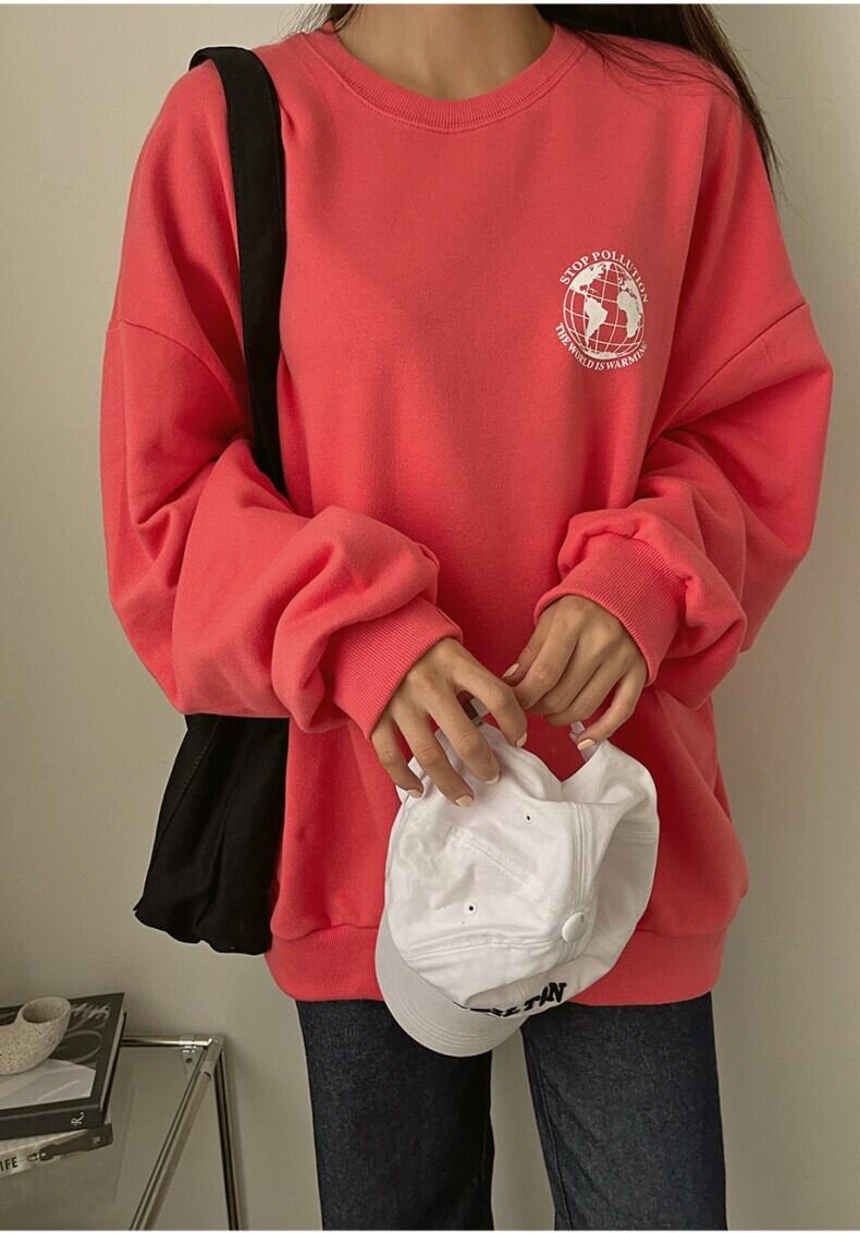 トップス トレーナー スウェット 部屋着 長袖 ドロップショルダー ラウンドネック かわいい シンプル カジュアル おしゃれ メンズライク マニッシュ ボーイッシュ スポーティー ペア 学生 通学 女子会 休日 着回し お揃い フリーサイズ ゆったり ゆる 黒 ブルー イエロー スカーレット