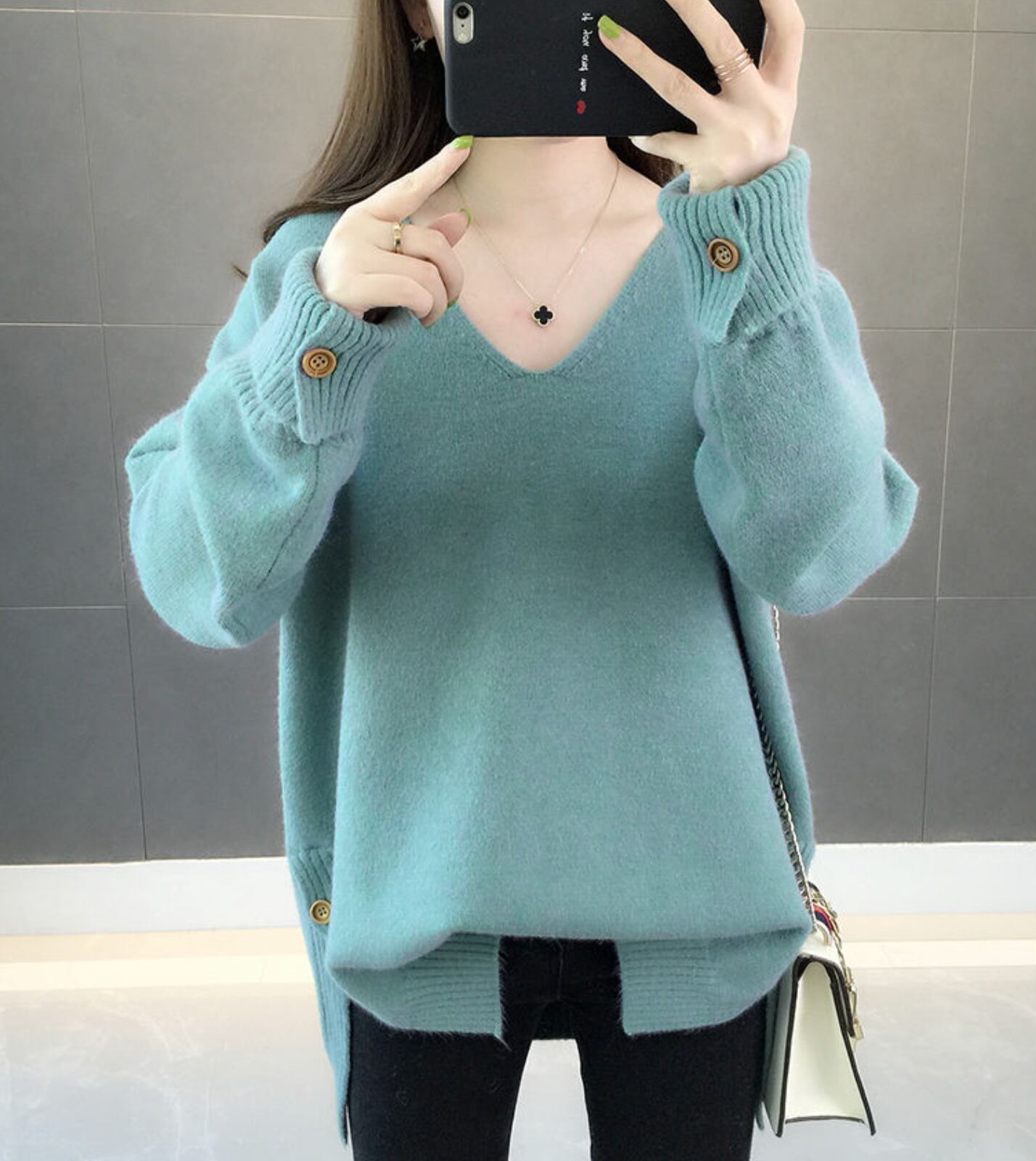 トップス セーター ニット レギュラー丈 袖あり 長袖 萌袖 Vネック スリット リブ リブニット ボタン ニット かわいい 大人可愛い カジュアル 大人 おしゃれ お洒落 大人女子 こなれ感 ラフ キュート 無地 秋 冬 10代 20代 レディース 女性用 ママ 通勤 学生 通学 デート お出かけ 女子会 休日 イベント 旅行 ホテル ガーデン レストラン ショッピング 韓国 韓国系 オルチャン サイズ S M L XL 2XL 3XL 大きいサイズ 大きい ゆったり