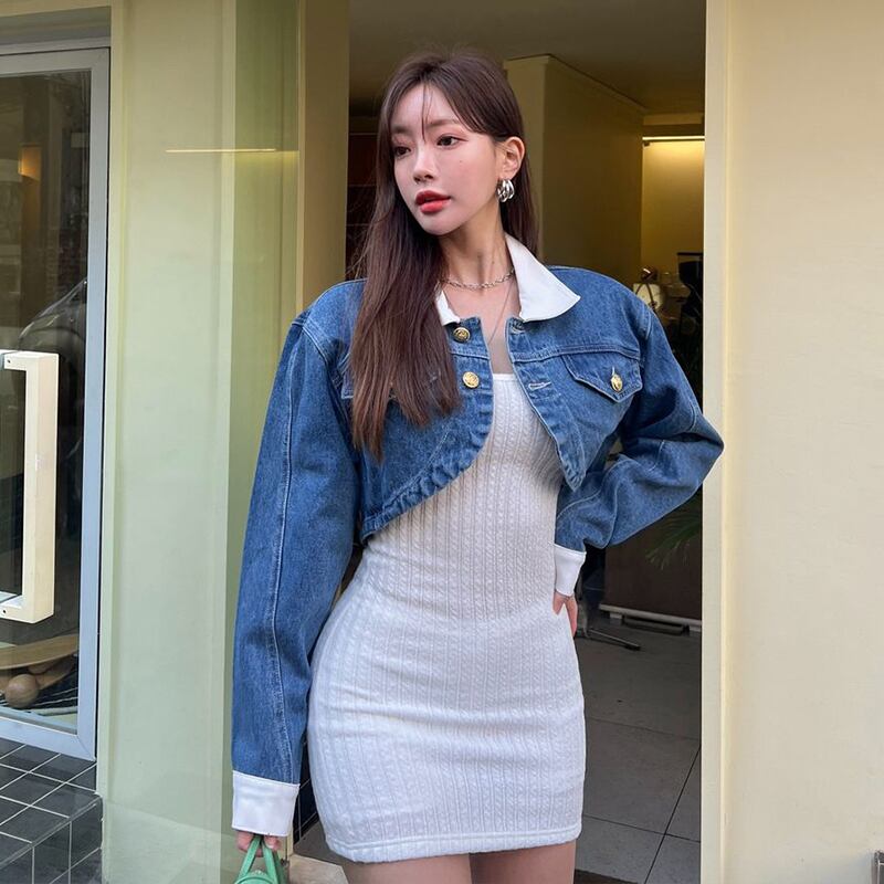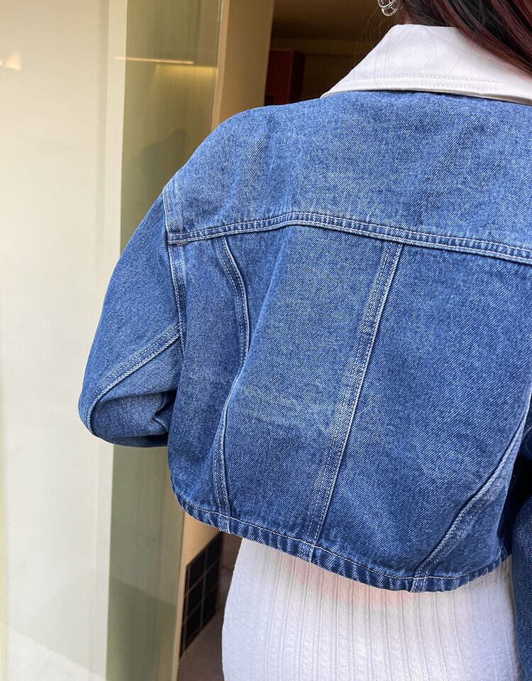 アウター ジャケット 上着 羽織り Gジャン ミニ ミニ丈 ショート ショート丈 袖あり 長袖 襟付き バイカラー 配色 前開き デニム ブルーデニム シンプル カジュアル おしゃれ お洒落 レトロ こなれ感 ラフ キュート ルーズ 個性的 存在感 アメリカン風 無地 春 秋 10代 20代 30代 40代 レディース 女性用 デート お出かけ 休日 アウトドア イベント 旅行 ショッピング 合コン コンパ 着回し 普段使い 韓国系 楽ちん 体型カバー トレンド S M L XL ゆったり 青 ブルー