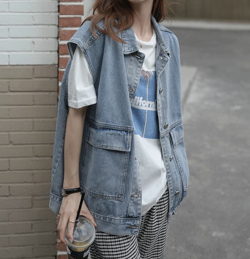 ジレ トップス ベスト 袖なし ノースリーブ 襟付き ワイド ポケット 前開き ブルーデニム 薄手 かわいい 大人可愛い シンプル カジュアル 大人 おしゃれ お洒落 かっこいい 大人可愛い 大人女子 こなれ感 ラフ ルーズ 個性的 主役級 存在感 とろみ感 抜け感 無地 春 夏 秋 誕生日 10代 20代 30代 40代 50代 60代 レディース 女性用 ママ オフィス ビジネス OL 通勤 学生 通学 デート お出かけ 公園デビュー 女子会 お泊まり 休日 イベント リゾート