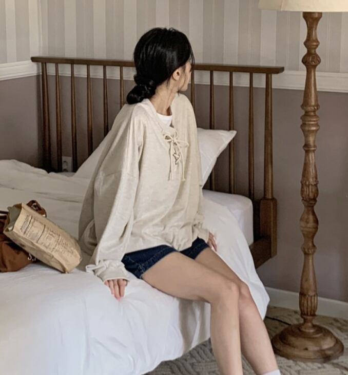 ロングTシャツ レースアップネック トップス デート Tシャツ カットソー プルオーバー トレーナー 袖あり 長袖 ドルマンスリーブ ドロップショルダー ラウンドネック 襟なし 伸縮性 綿 コットン かわいい 大人可愛い シンプル カジュアル 上品 おしゃれ 大人女子 ラフ ラブリー キュート ガーリー ルーズ 無地 秋 10代 20代 30代 レディース デート お出かけ 女子会 休日 アウトドア ショッピング 楽ちん モテ 大きい ビッグサイズ ゆったり ゆる ワンサイズ